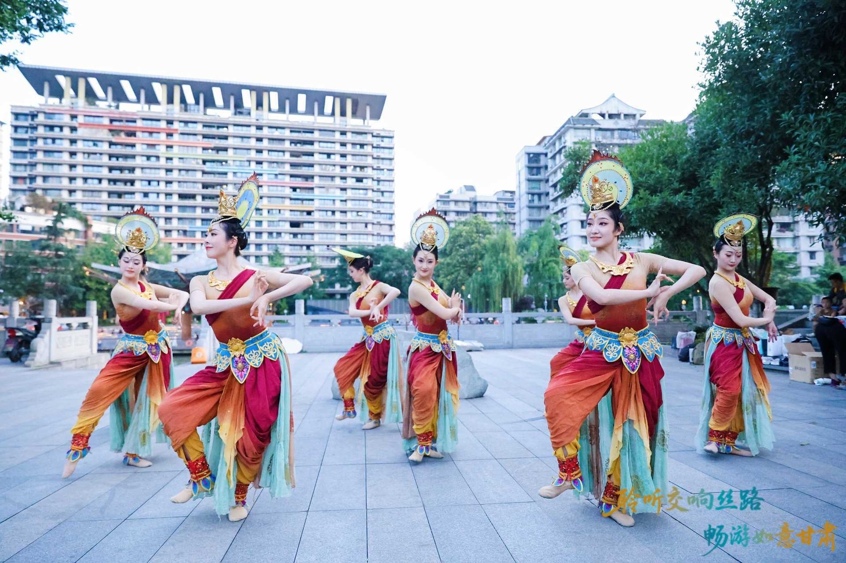 此外,6月16日晚,甘肃文旅推介团队还在成都合江亭上演快闪,邀请成都市民在今年的旅游旺季大幕开启之际赴甘旅游。