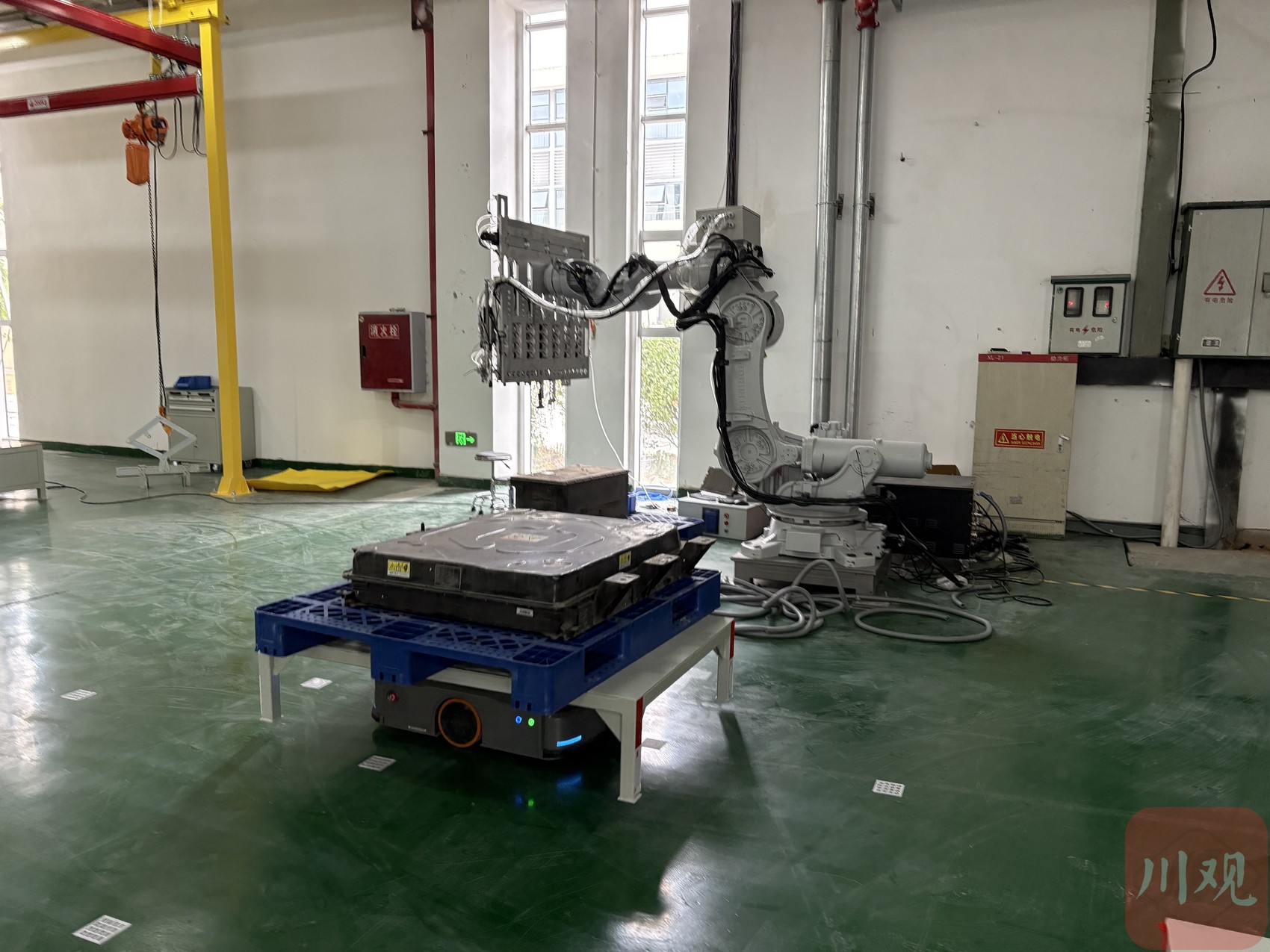 AGV运输机器人将电池包底盘送至抓手臂机器人处理螺丝,再经过镍片处理、分容、配组、正负极检验等一系列流程,旧电池便“焕然一新”,继续用于诸如低速车等领域。6月19日,在位于雅安经开区雨城园中园的四川兴泓博科技发展有限公司,全自动生产线火力全开,“一整套流程下来,电池‘由旧变新’仅需4小时,相较以往效率提升一倍有余。”公司副总经理张旗明说。