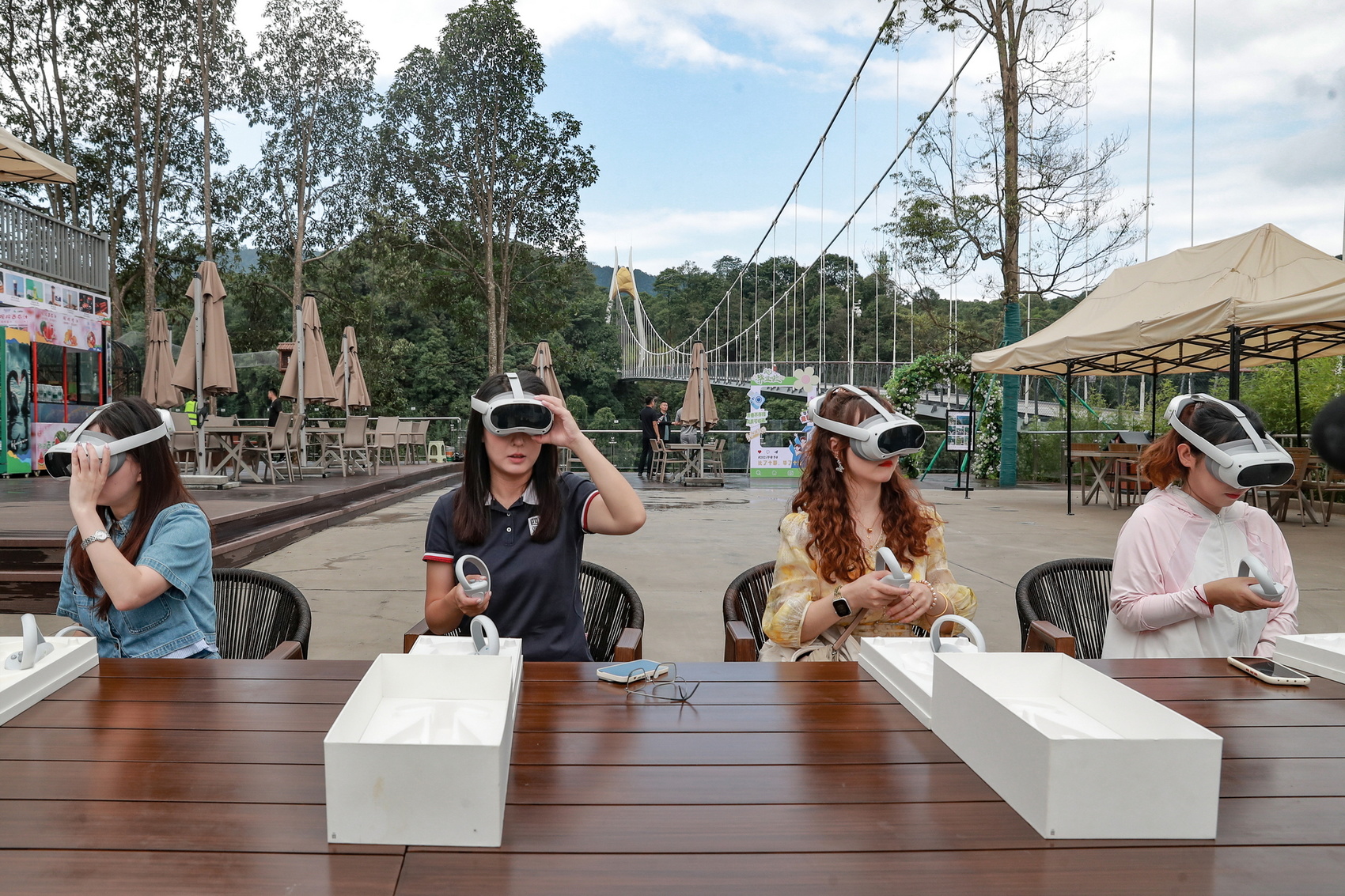 去年,碧峰峡创新推出“5G+VR+无人机”全景实时直播云游览,游客通过VR便能沉浸式体验碧峰峡生态文化、地质文化。