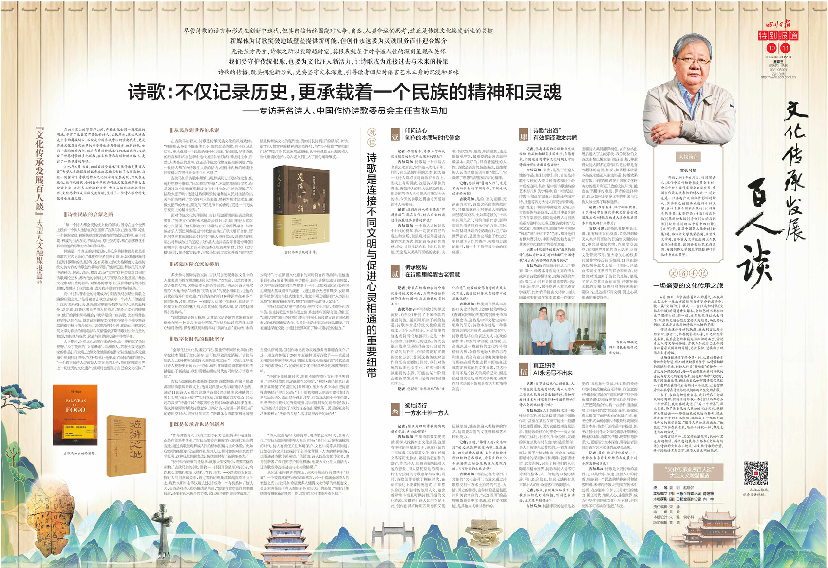 四川日报全媒体“文化传承发展百人谈”大型人文融媒报道持续推出,今日《四川日报》连版推出第八十七期,专访著名诗人、中国作协诗歌委员会主任吉狄马加。