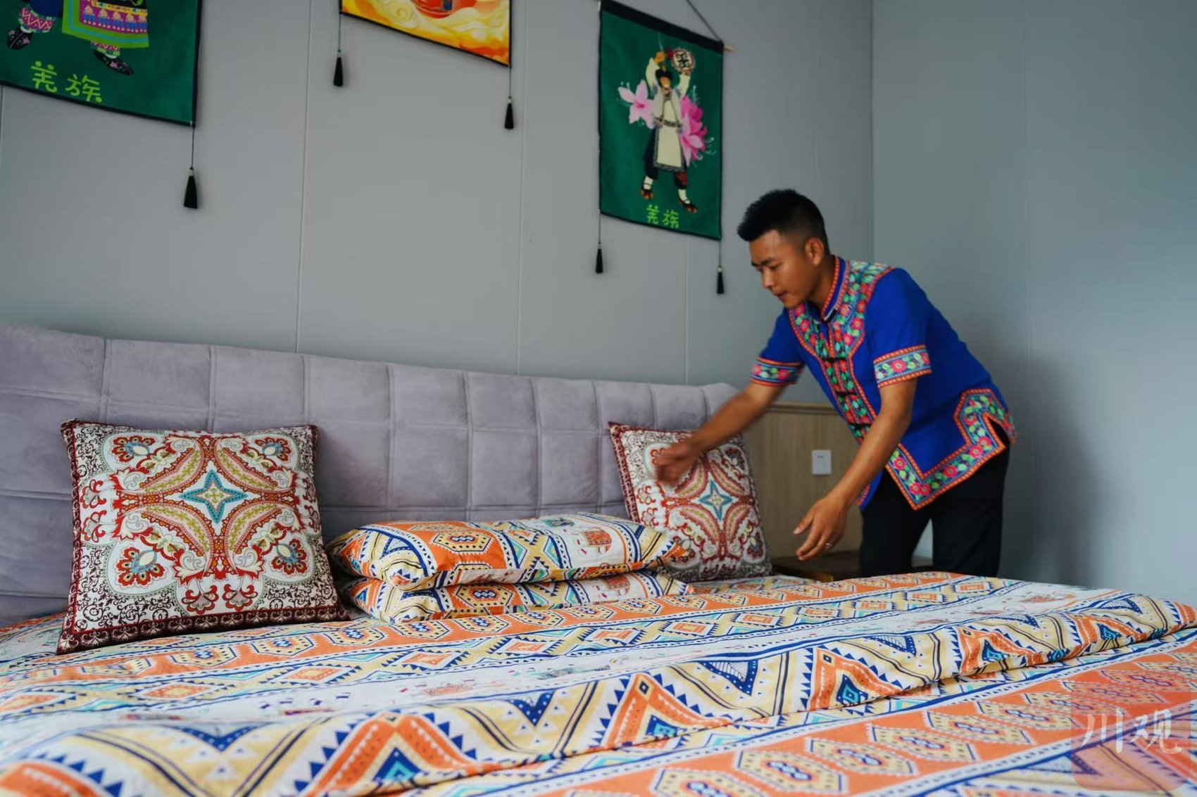 除了研学团队,不断增多的游客也带给当地村民更多的发展机遇。今年29岁的王民豪在看到家乡的巨变后,毅然放弃在绵阳月入万元的高薪工作,回到石椅村开办起了民宿。
