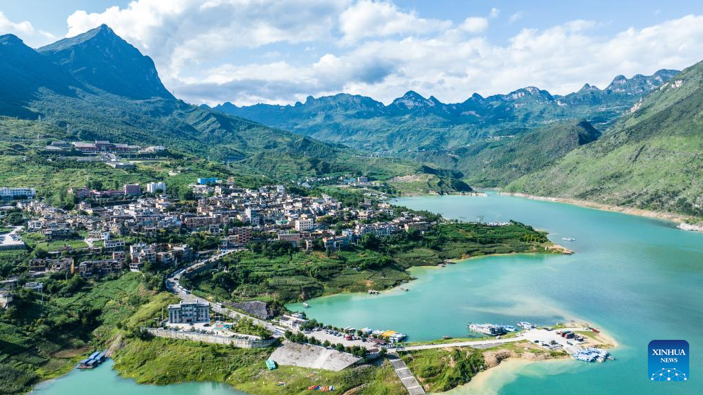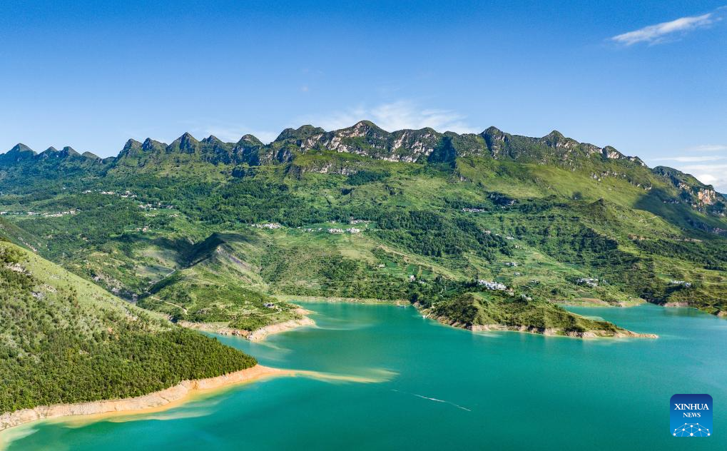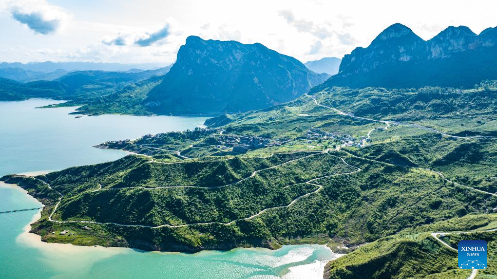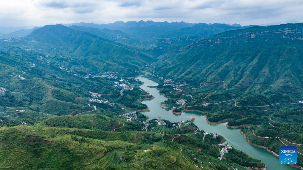 This aerial drone photo taken on June 28, 2025 shows a view of the Zangke river scenic area in Liupanshui, southwest China's Guizhou Province. (Xinhua/Tao Liang)