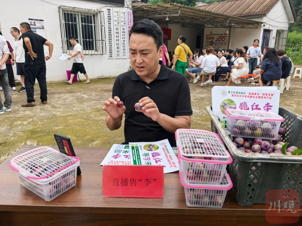7月3日,雨城区青江街道张碗村脆红李种植园内,累累果实压弯枝头,欢声笑语回荡田间。在“果香脆红 田园欢畅”脆红李采摘节活动现场,第一书记沙友的手机直播间人气火爆,通过电话、微信订购的脆红李已突破3000斤,线上价格达每斤6元,销售势头强劲。