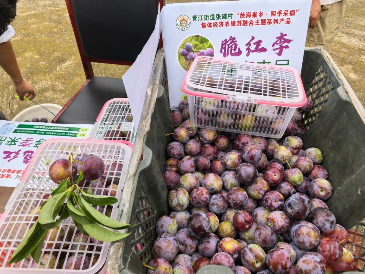 在采摘果园内,游客吴佳分享到,“暑假带孩子体验采摘乐趣,脆红李又大又甜,好吃!一会儿时间就摘了好几斤,真是不虚此行。”这甜蜜的果实,正是张碗村产业兴旺的缩影。该村立足“花果张碗”发展定位,构建蔬菜、水果、养殖“三大特色产业”体系,依托市、区“菜篮子”工程,积极对接市场。目前全村已发展脆红李、六月雪等精品水果500余亩,规模化蔬菜基地300亩,带动农户自种蔬菜700亩,确保“季季有收获,年年有收入”。