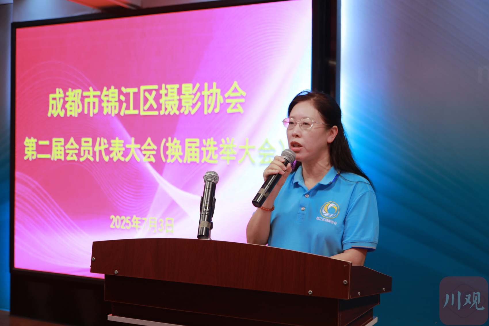 2025年7月3日上午,成都市锦江区摄影协会第二届会员代表大会在锦江区文化馆举行,莫小琴当选主席。大会由会员代表杜冰主持,近百名名会员代表参会,中国摄影报、四川C视觉影像库等发来贺信,成都市文联副主席曹铁、四川日报记者及C视觉影像库编辑陈鹏等嘉宾受邀出席。