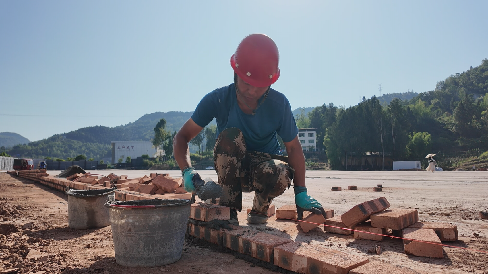 7月3日,在平昌县“司机之家”项目施工现场,机械轰鸣,施工人员正顶着烈日进行花墙堆砌作业,各项配套设施建设也在同步推进。