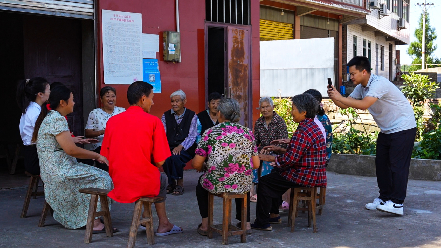 院坝里,吴文娟手持宣传手册细致解读,另一侧的工作人员正举着手机拍摄记录。“不光现场讲,这些画面还要剪成短视频,让更多老百姓也能看懂政策。”吴文娟解释。