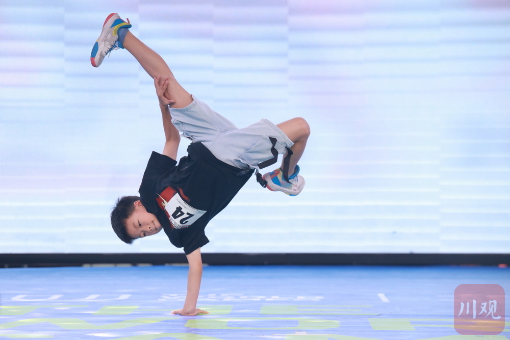 摇滚步、排腿、空中定格……在率先开展的U10段比赛中,孩子们各显神通,跟随“动次打次”的音乐节奏表演各种霹雳舞技巧和动作,尽显青春活力和街舞魅力。一系列酷炫动作引得现场观众纷纷叫好,现场一派热闹景象。