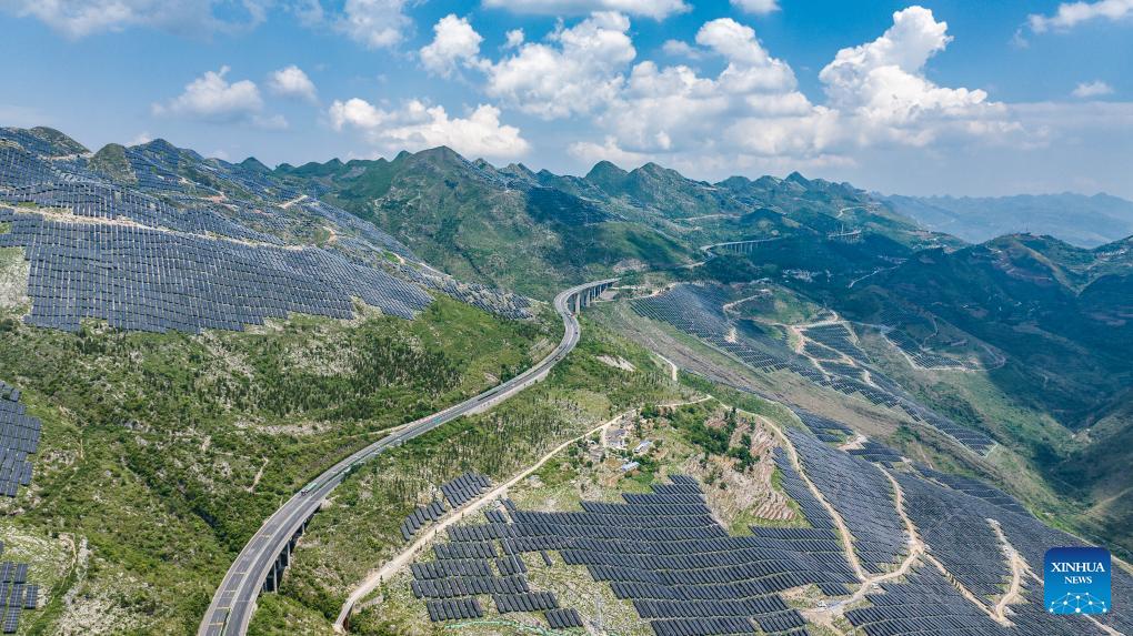 This photo taken on May 23, 2024 shows the Panjiang million-kilowatt photovoltaic base project in the Bouyei-Miao Autonomous County of Guanling, southwest China's Guizhou Province. In recent years, Guizhou has made significant progress in ecological construction, striving to transform ecological advantages into developmental strengths.