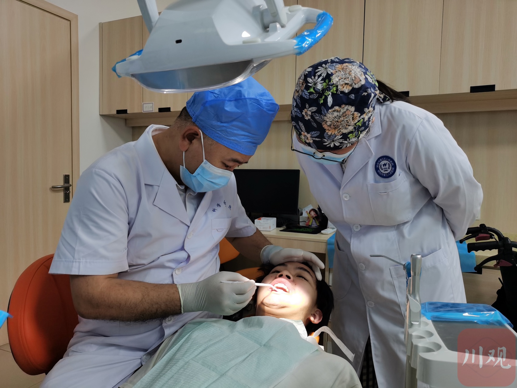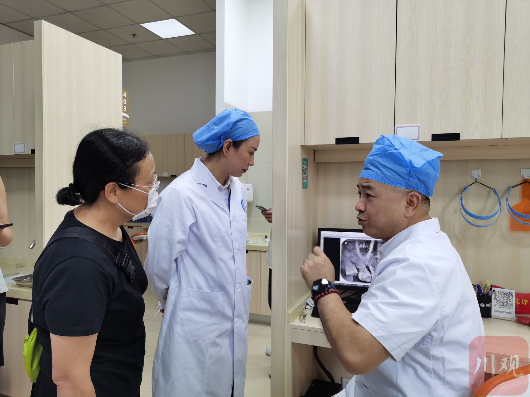 除了为群众提供免费诊疗,医务人员也在专家诊疗中获取新技术、新思路。在雁江区人民医院口腔科诊室内,坐诊的是中国科学院成都分院科学园医院院长、民建中央卫生健康医药委员会副主任周国清。他认为,雁江区人民医院口腔科已具备从基层常见病到细分专科的诊疗水平,接下来需聚焦更加精细化的跨越式学科发展。比如,在接诊高龄拔牙患者时,利用好综合医院医疗资源,开展多学科联合的监护拔牙;检查有正畸需求患者的口腔状况时,不仅要关注美观度,也要注重口腔关节的矫正。