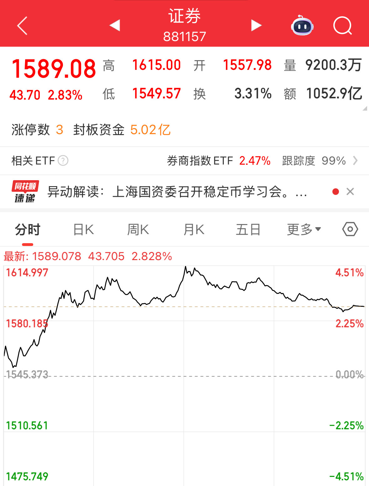 今日,被市场亲切称为“牛市旗手”的证券板块,从银行股手中接过“接力棒”,成为推动大盘指数昂首向上的主力引擎。