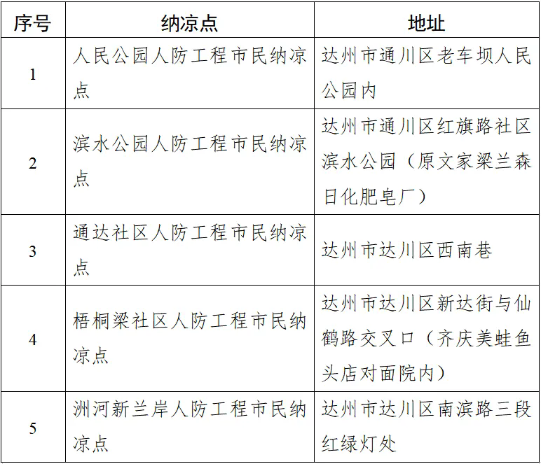 此次开放的人防工程纳凉点分别是:人民公园、滨水公园、通达社区、梧桐梁社区、洲河新兰岸。