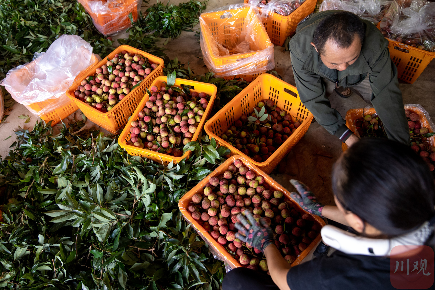 7月17日,泸州市合江县荔江镇五亩村,村民在分拣荔枝。