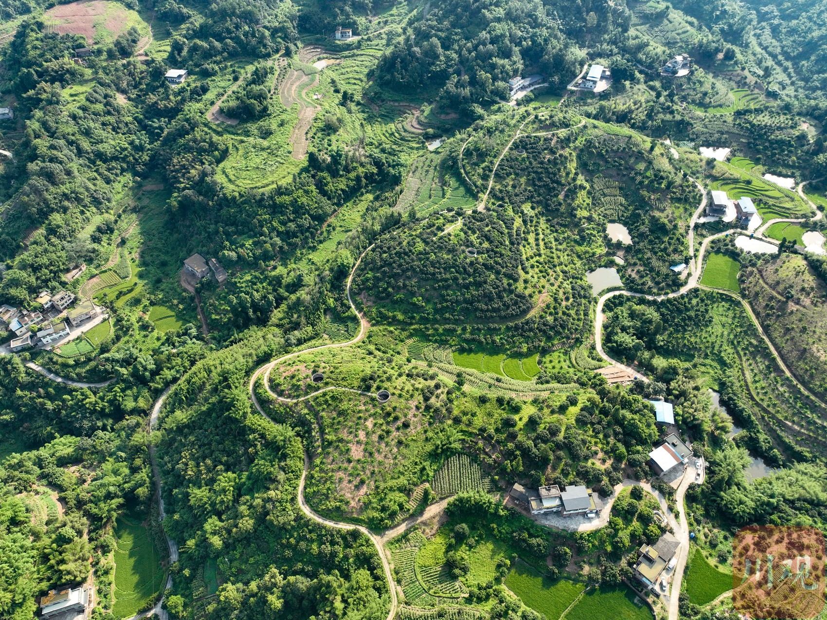 7月17日,泸州市合江县荔江镇五亩村航拍,小山坡上是荔枝树。