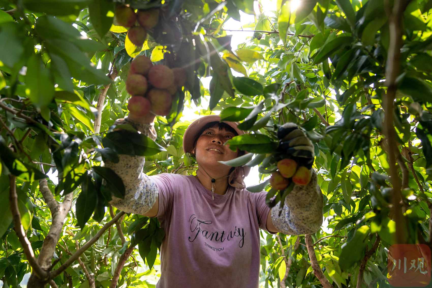 7月17日,泸州市合江县荔江镇五亩村,村民正在采摘荔枝。