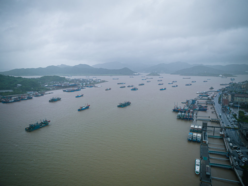 据浙江省气象台消息,今年第8号台风“竹节草”向浙江沿海靠近。受其影响,浙江省宁波市象山县出现强降雨,当地船只归港避风,轮渡汽渡停航。