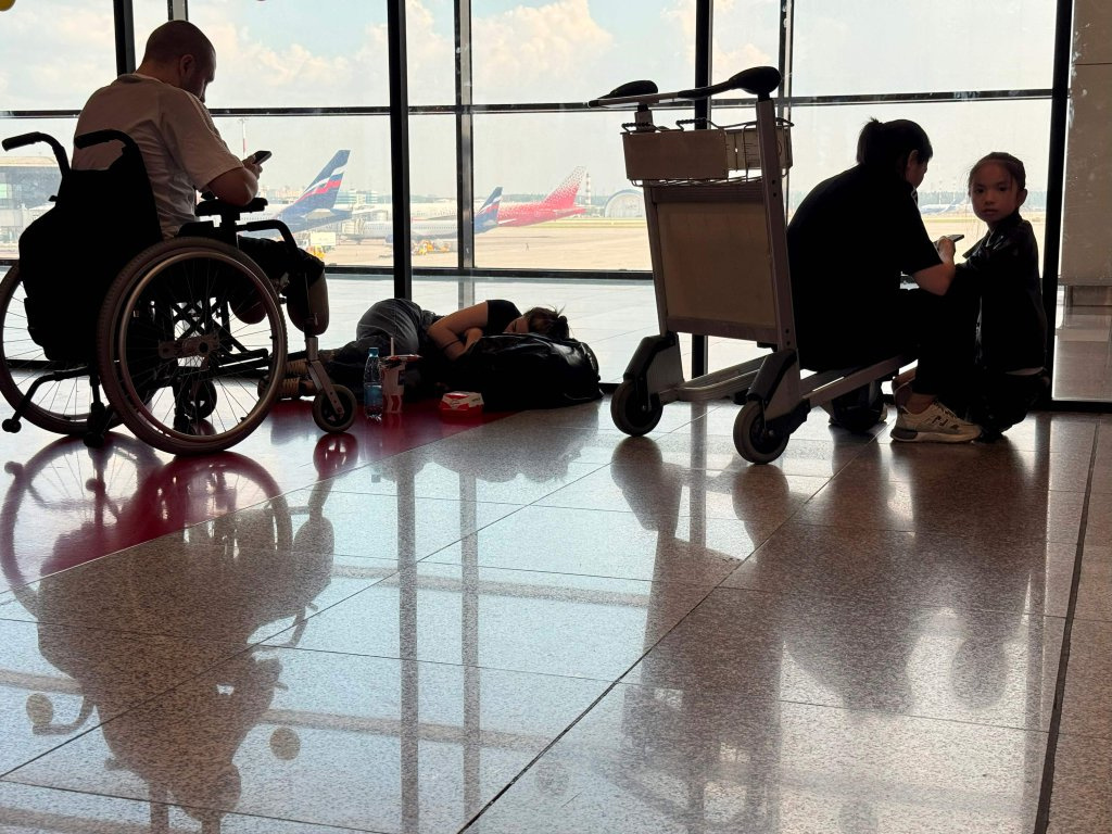 7月28日,在俄罗斯莫斯科的谢列梅捷沃国际机场,旅客等待值机。