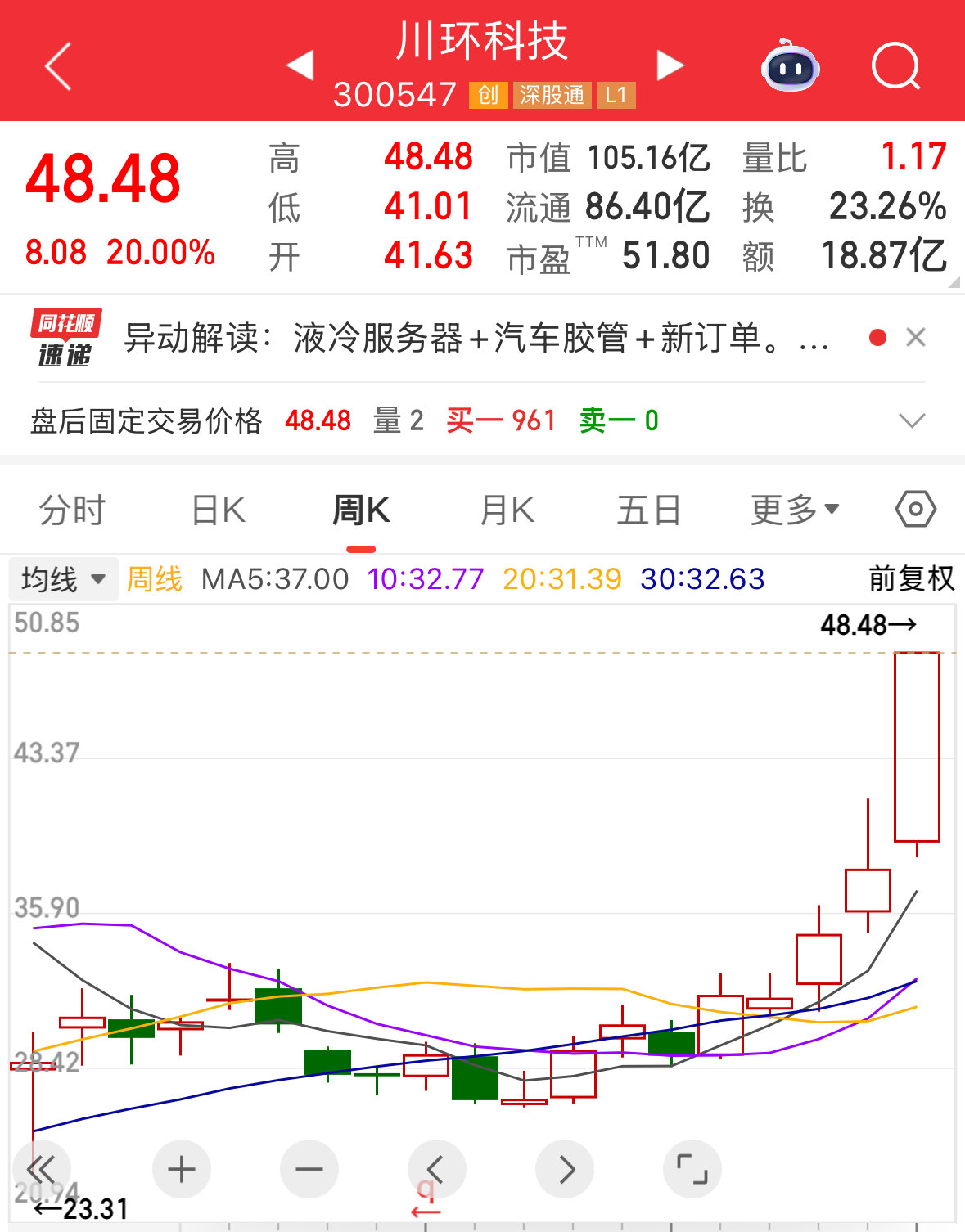 此外,液冷服务器概念板块今日“一飞冲天”。根据同花顺数据,该板块涨幅超过5%的股票一度达到38只,其中有15只股票一度涨停或涨幅超过10%。大元泵业收获5个涨停板;板块的“领头羊”川股川环科技早盘就已实现“20cm”涨停。从周线来看,川环科技已连涨五周。除了受液冷服务器概念板块影响外,川环科技的涨势与其11日发布的2025年半年报也息息相关。对于市场关心的液冷业务,川环科技在半年报中更新了进展——公司对某液冷服务器公司使用的冷却系统管路产品已经研发成功,并经客户验证合格,报告期有批量供货。这无疑增强了投资者对于该股的信心。