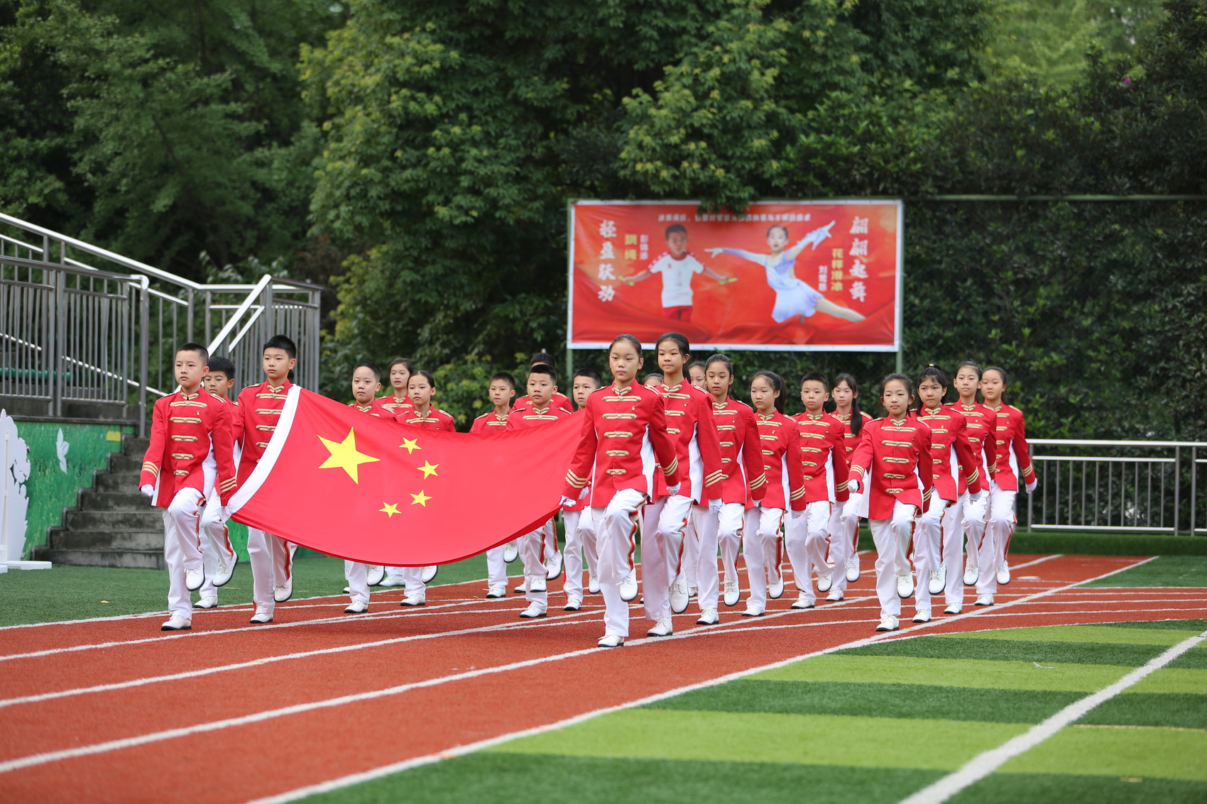 成都市锦官新城小学的开学典礼现场