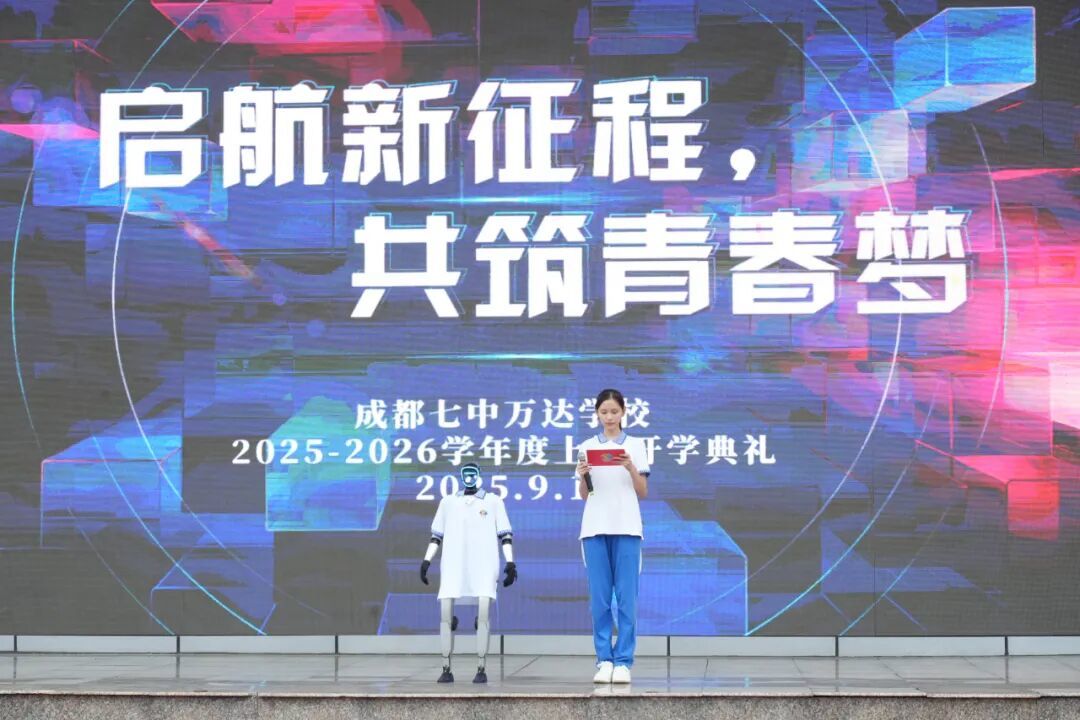 在成都七中万达学校,机器人参与主持的开学典礼