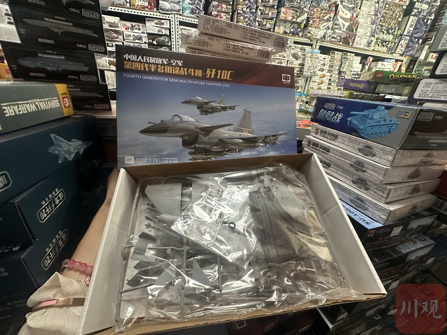成都“园林模型”玩具店的歼-10C军事模型。行晓艺 摄