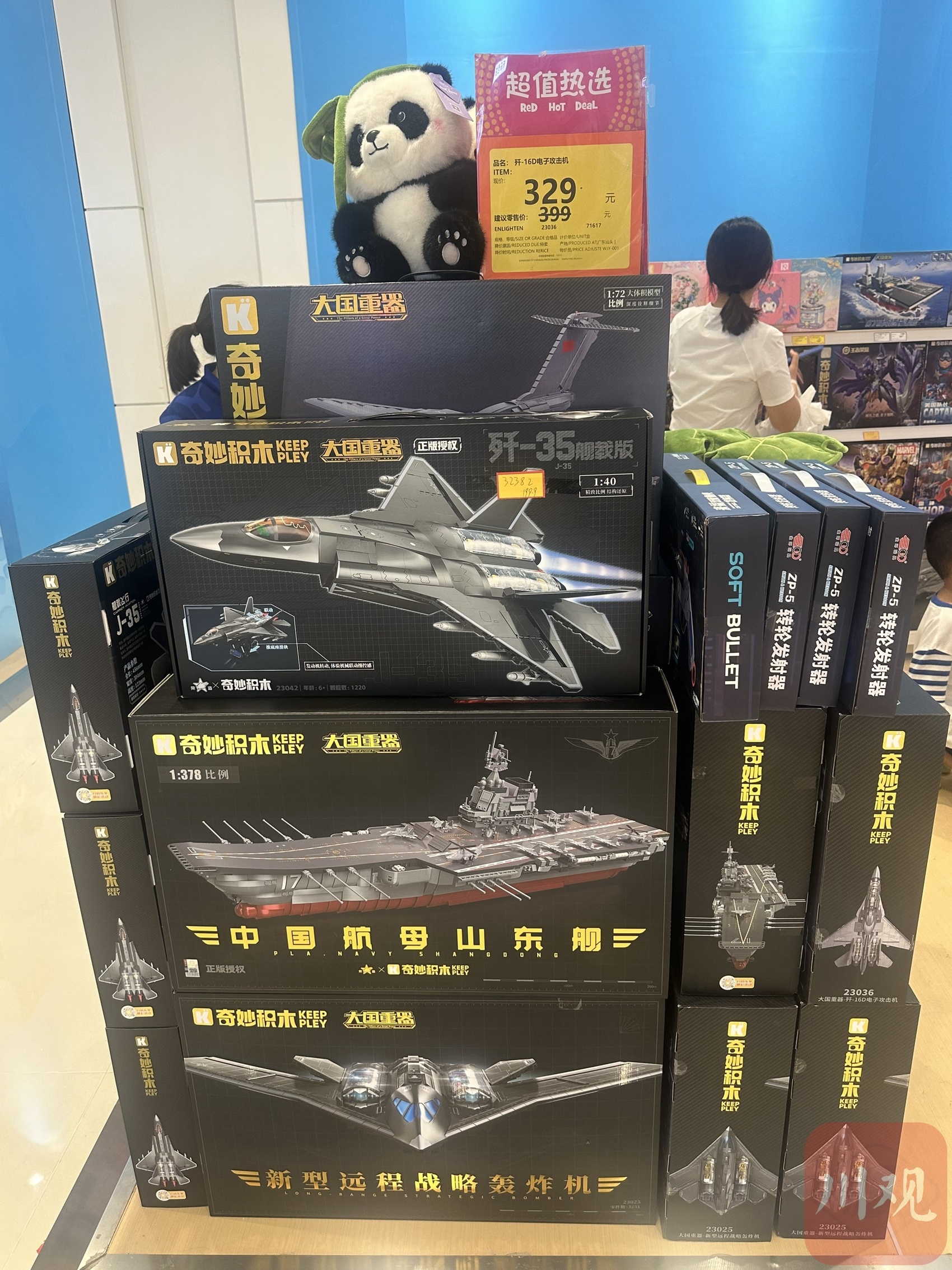 “这些是上周四新上的歼-35、歼-20等模型,都是阅兵同款。”店员介绍,到9月15日,消费达到一定额度,还会送福建舰的纪念徽章。
