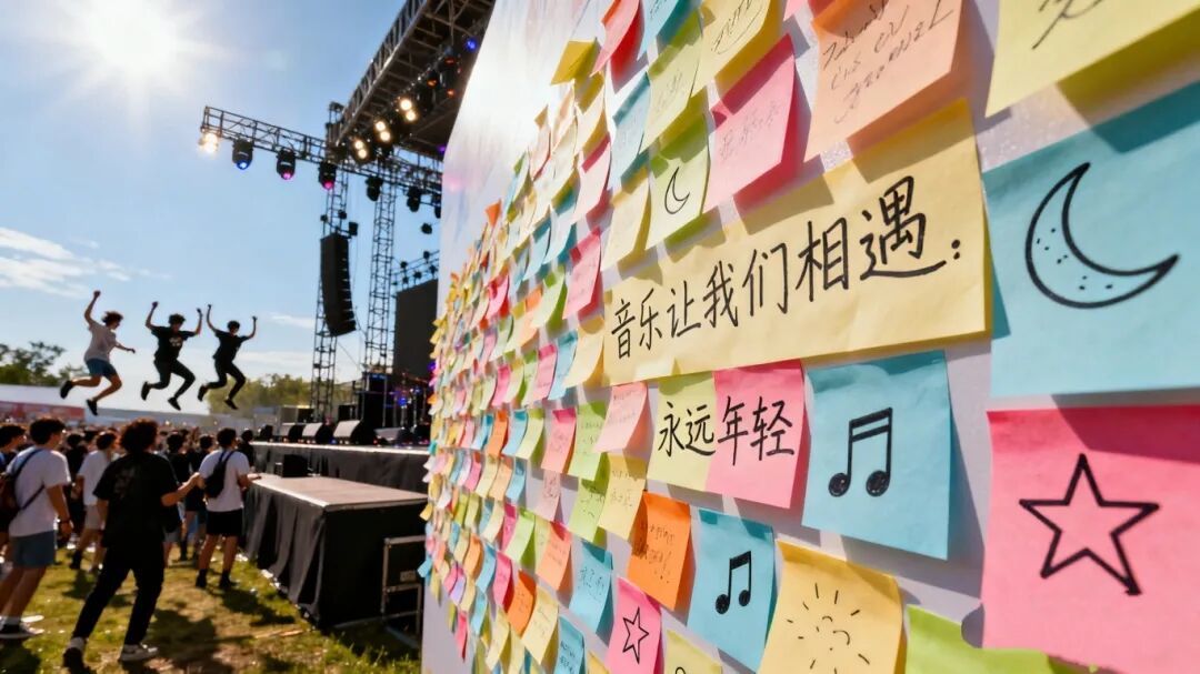 现场有一面特别的墙,你可以手写一张便利贴,写下某首老歌和你的故事,贴上去,和大家分享你的青春记忆 。
