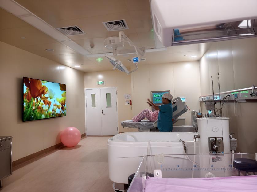 产房之内,科技与人文并重:产时超声精准评估产程,减轻反复指检引起的不适;专业医疗组全程守护,做好孕产妇健康保障;“可定制”的SDR产房通过光影、音乐营造放松氛围,提升自然分娩成功率;LDR产房支持家人陪伴,营造温馨氛围迎接新生命;一对一导乐师则从分娩前的耐心交谈到分娩时的专业支持、分娩后的抚育指导全程陪伴。
