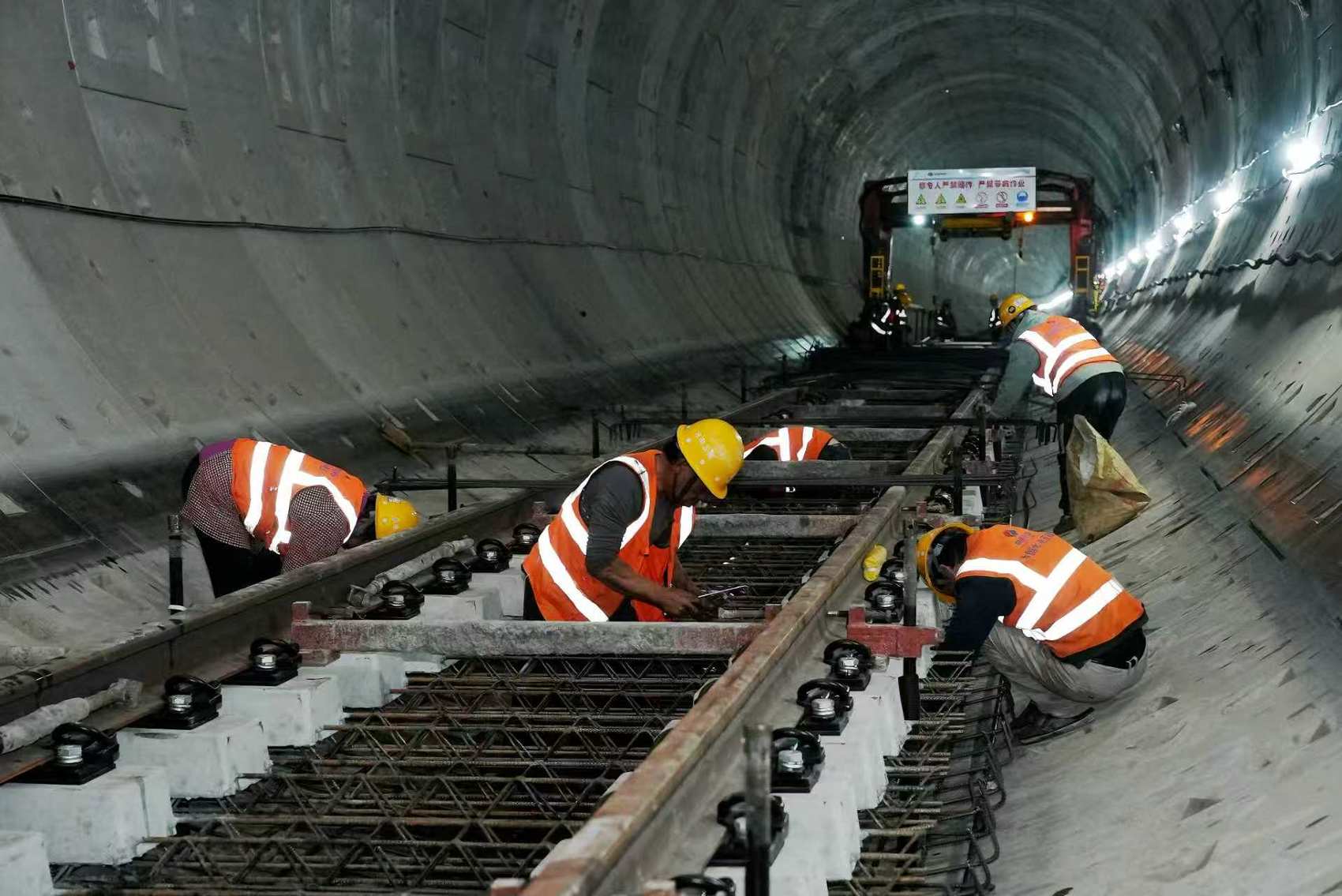 为此,项目团队采用高度协同的“流水线”施工模式,将施工作业面科学划分为10个作业区段,使轨排搭设、钢筋绑扎、轨道精调、混凝土浇筑等工序交叉推进、无缝衔接,最终实现日均铺轨120米的高效推进。