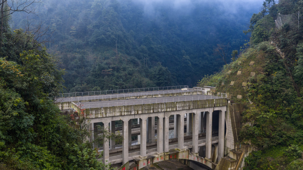 12月10日拍摄的渝昆高铁彝良隧道口(无人机照片)。