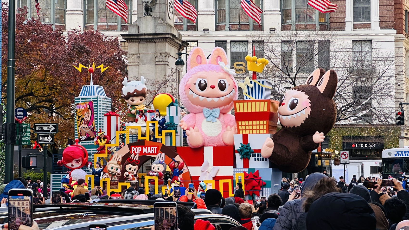泡泡玛特携旗下多款超人气IP首次参与第99届梅西百货感恩节大游行。