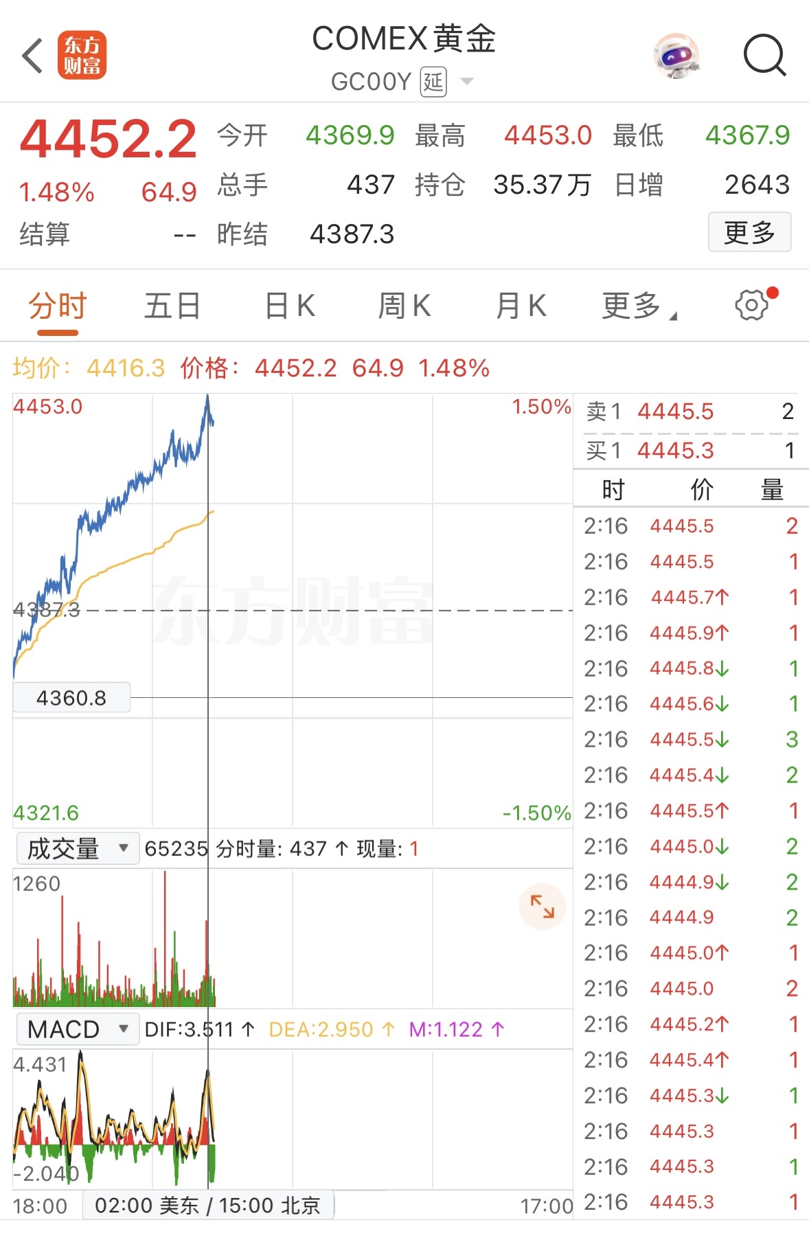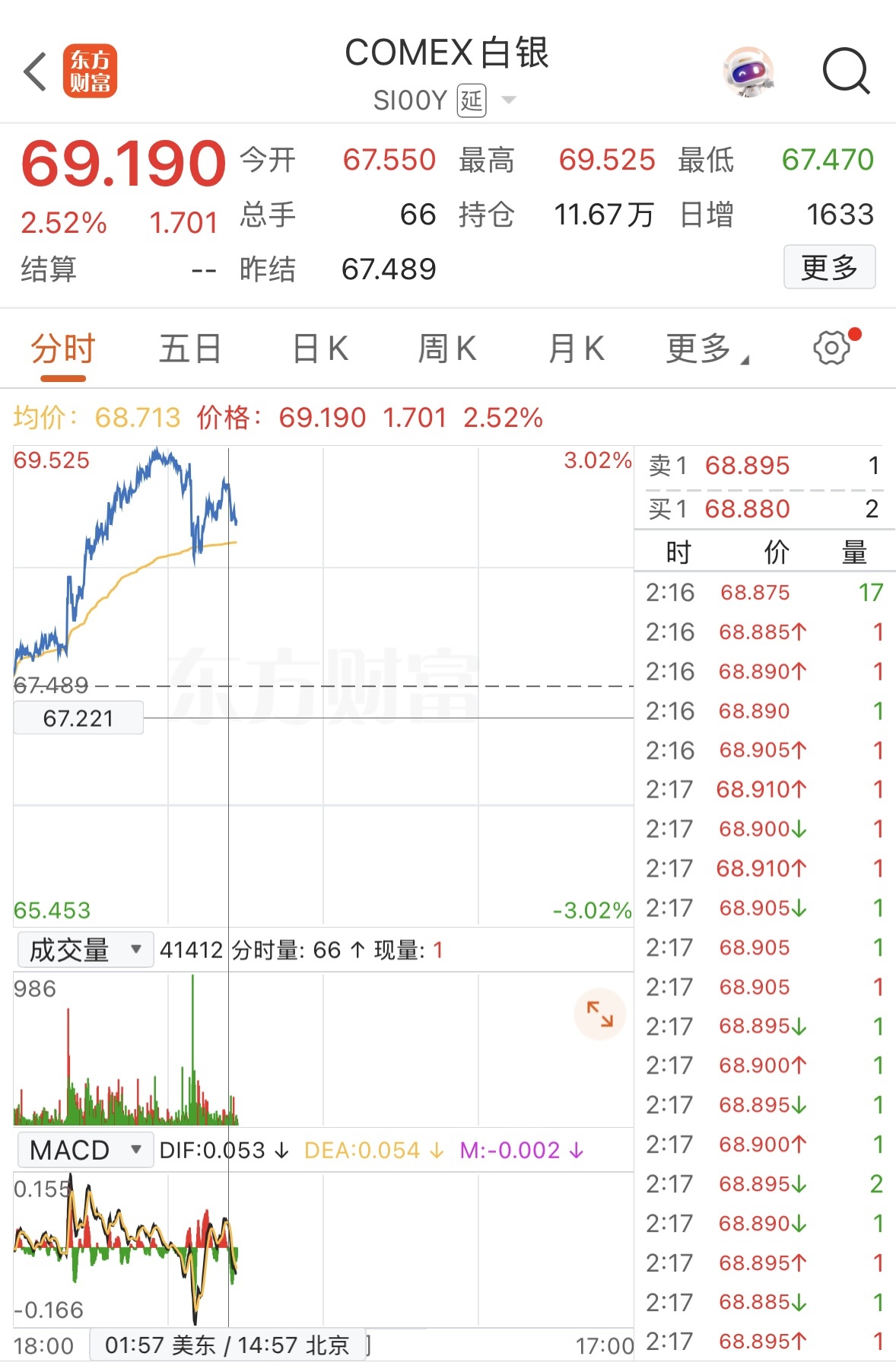在美联储降息周期和中东地缘政治紧张双重刺激下,贵金属集体大涨,多个品种创新高。截至A股收盘时间,现货黄金报4452.2美元/盎司,再创历史新高;现货白银盘中突破69美元/盎司。