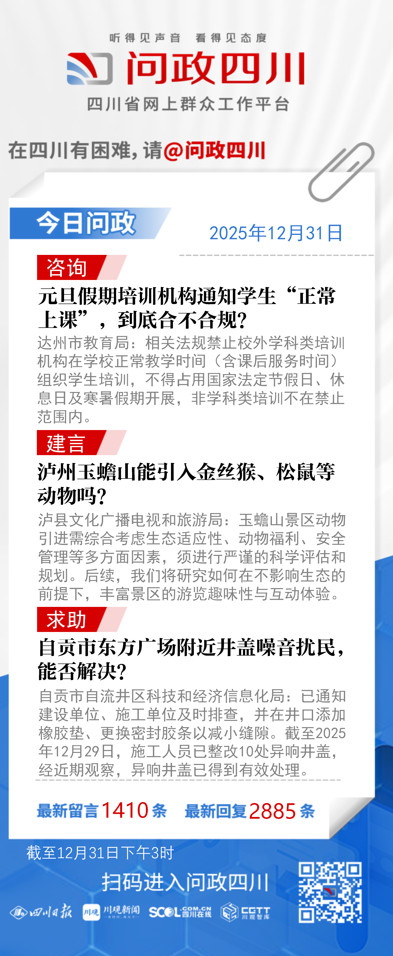 在四川有困难,找问政四川。如果您在四川遇到了操心事、烦心事、揪心事,请登录“四川省网上群众工作平台——问政四川”或拨打问政四川热线(028-96001)留言反映、求助或建议。我们将充分发挥平台的互动联系作用及舆论监督功能,第一时间传递民声,推动问题得以及时解决——听得见声音,看得见态度。