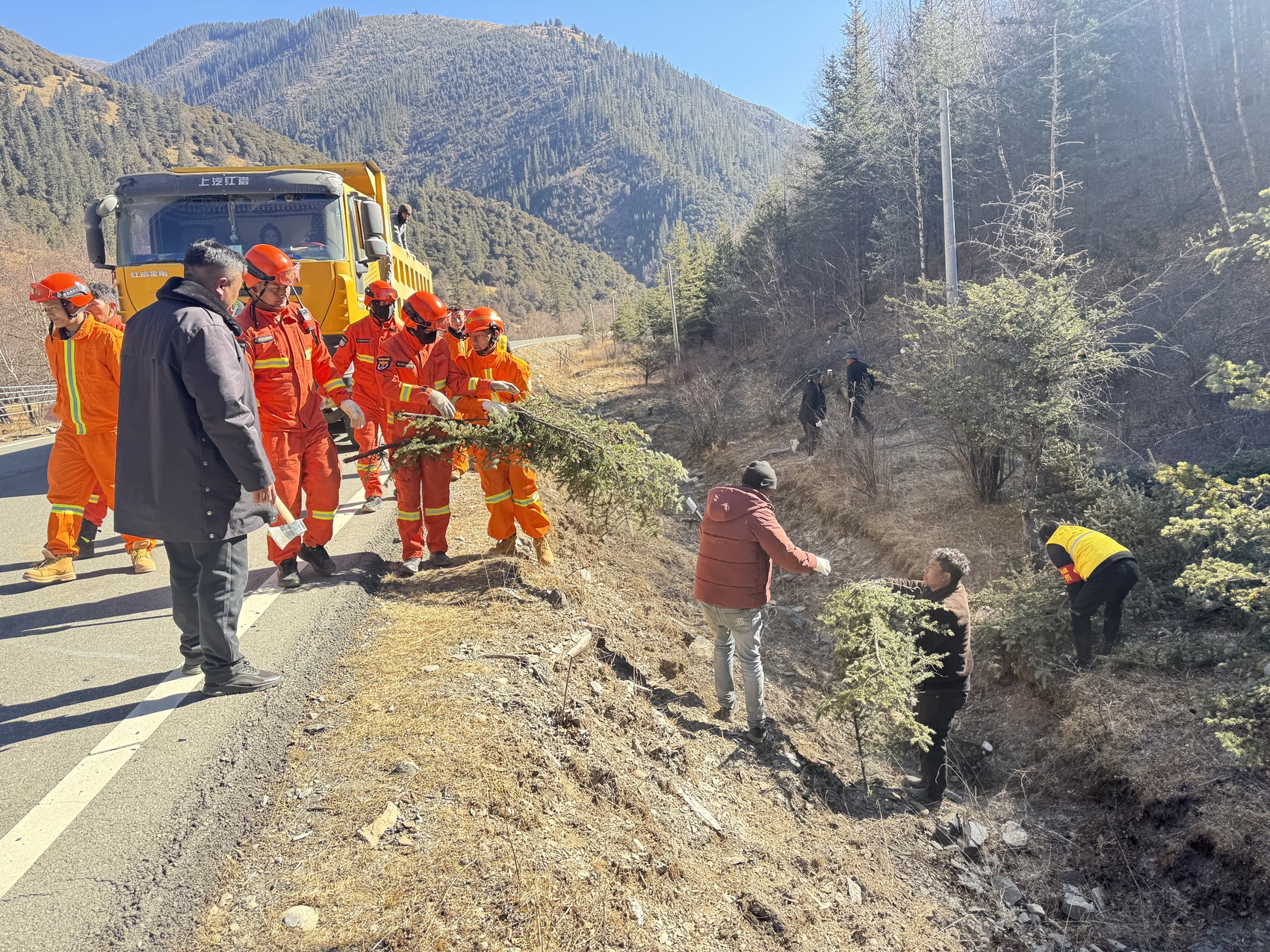 1月22日,稻城县组织人员清理输电线路下的可燃物。