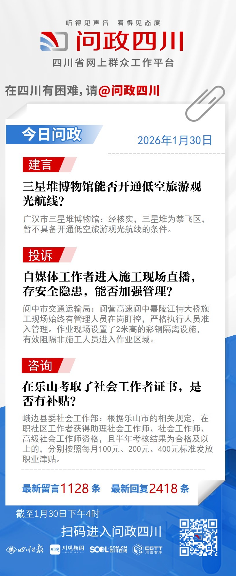 问政四川遇到操心事、烦心事,留言或打电话就能反映,能实实在在解决问题。