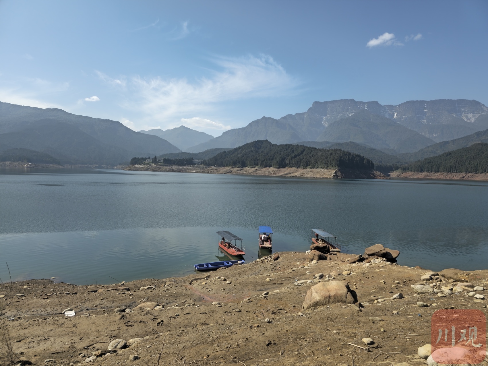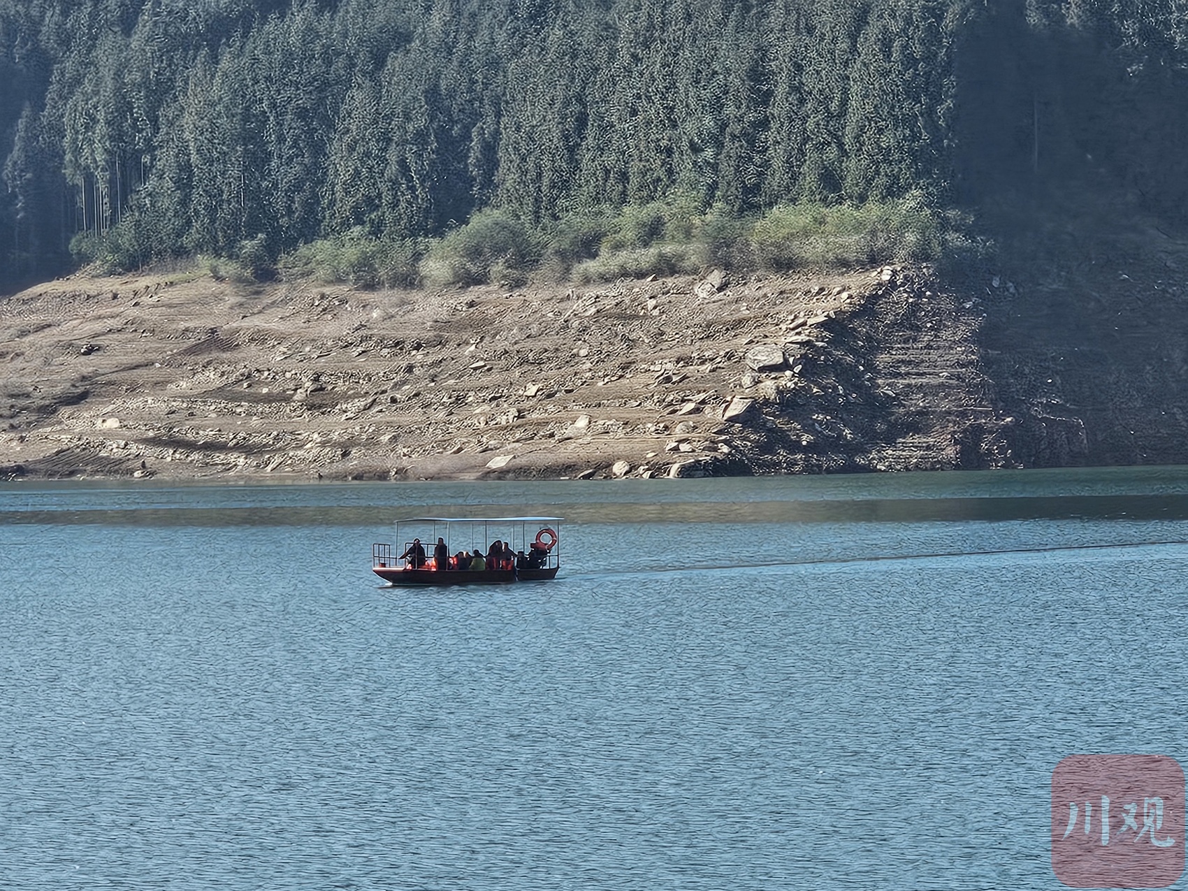 村民自用船在眉山市洪雅县雅女湖湖面行驶。