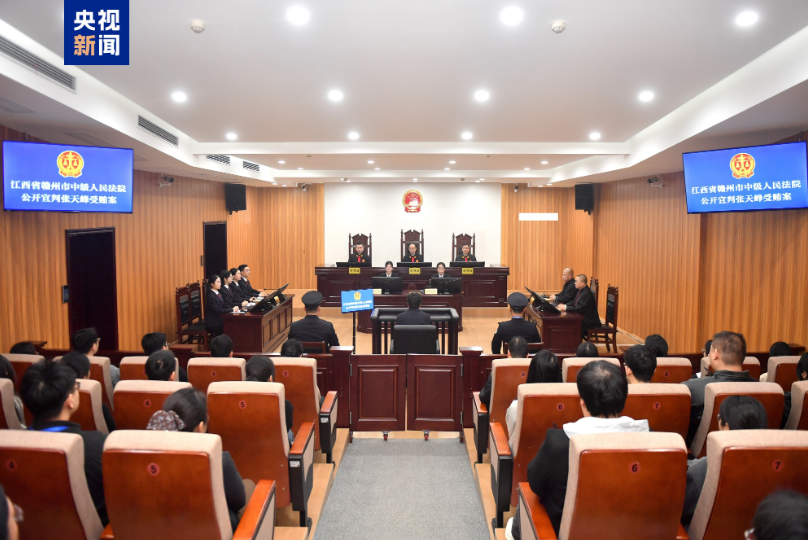 赣州市中级人民法院于2026年1月8日公开开庭审理了该案。庭审中,检察机关出示了相关证据,被告人张天峰及其辩护人进行了质证,控辩双方在法庭的主持下充分发表了意见,张天峰进行了最后陈述,并当庭表示认罪悔罪。人大代表、政协委员、新闻记者和各界群众40余人旁听了庭审。