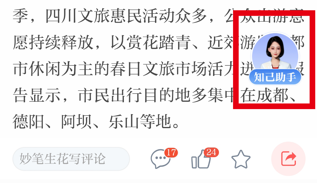 4月9日,基于川报集团智媒云行业大模型与“若水” 省情语料库核心能力,川观新闻“知己”新闻助手智能体正式上线,聚焦资讯解读、服务提供、客户端操作3大核心方向,持续拓展川观新闻用户的使用场景和阅读体验边界。