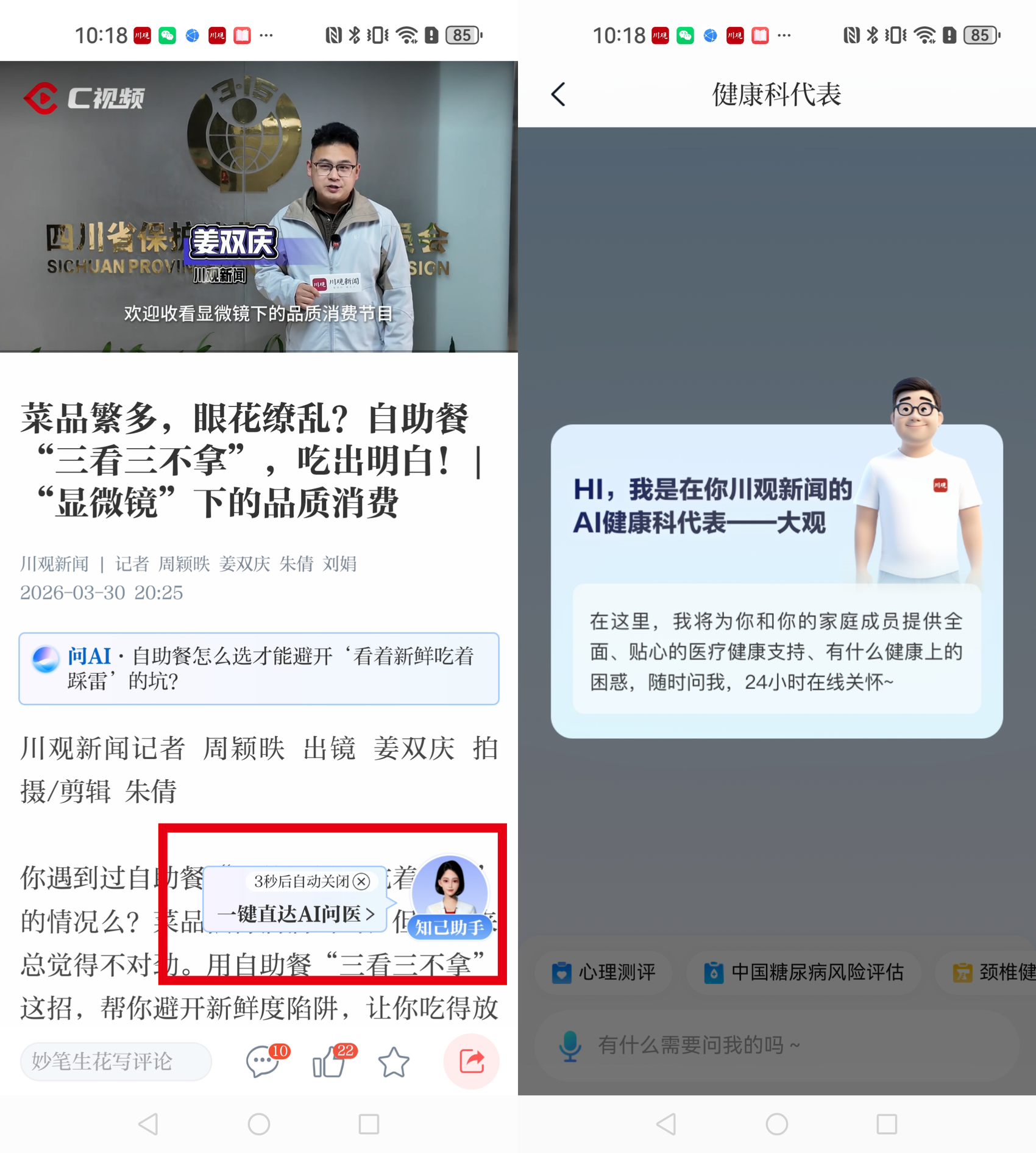 “知己”新闻助手链接AI问医