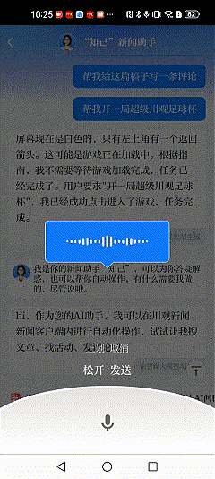 试试对“知己”说:“帮我开一局川观超级足球”“为这篇文章写一条精品评论”“打开每日答题活动”——“知己”将快速响应,完成搜索、评论发布、活动查找等高频操作,让每一步都轻快利落。