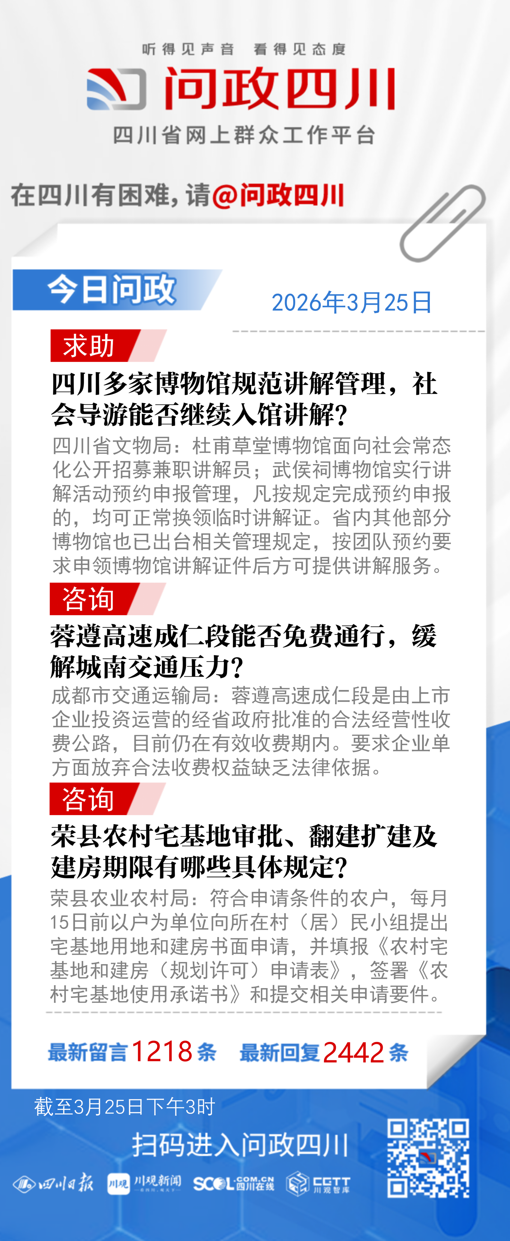 问政四川网友提问:我是成都市的一名普通导游,在成都杜甫草堂、武侯祠等博物馆讲解。但是现在省内各大博物馆开始收紧讲解管理,部分社会导游无法入馆讲解。请问社会导游如何能够争取到机会,在馆内开展讲解活动?