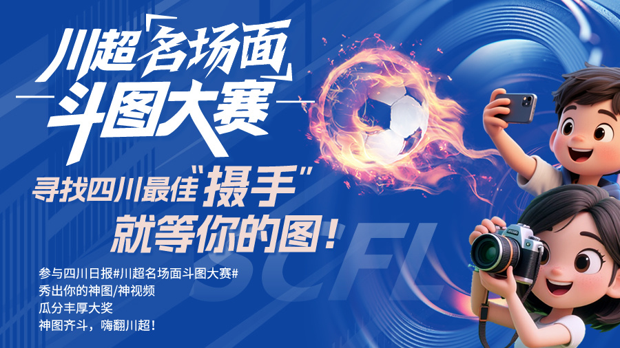 无论你是奔赴现场的抓拍达人,用镜头捕捉到了球员的高光时刻、球迷的热烈模样;还是玩转剪辑的短视频玩家,能剪出15—60秒的赛场快剪、花絮趣事;亦或是脑洞大开的二创高手,擅长制作川超专属表情包、混剪视频、漫画衍生;甚至是玩转科技的AI先锋,能用AI增强、风格化神图重新定义绿茵美学 —— 这里都是你的秀场,大胆晒出你的作品,让川超的精彩被更多人看见!