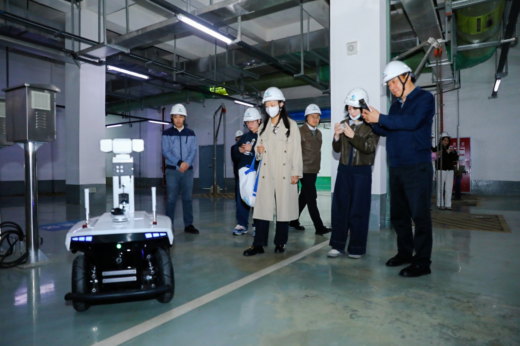 参观者在深埋地下的净水厂,偶遇巡检机器人。成都环境集团供图