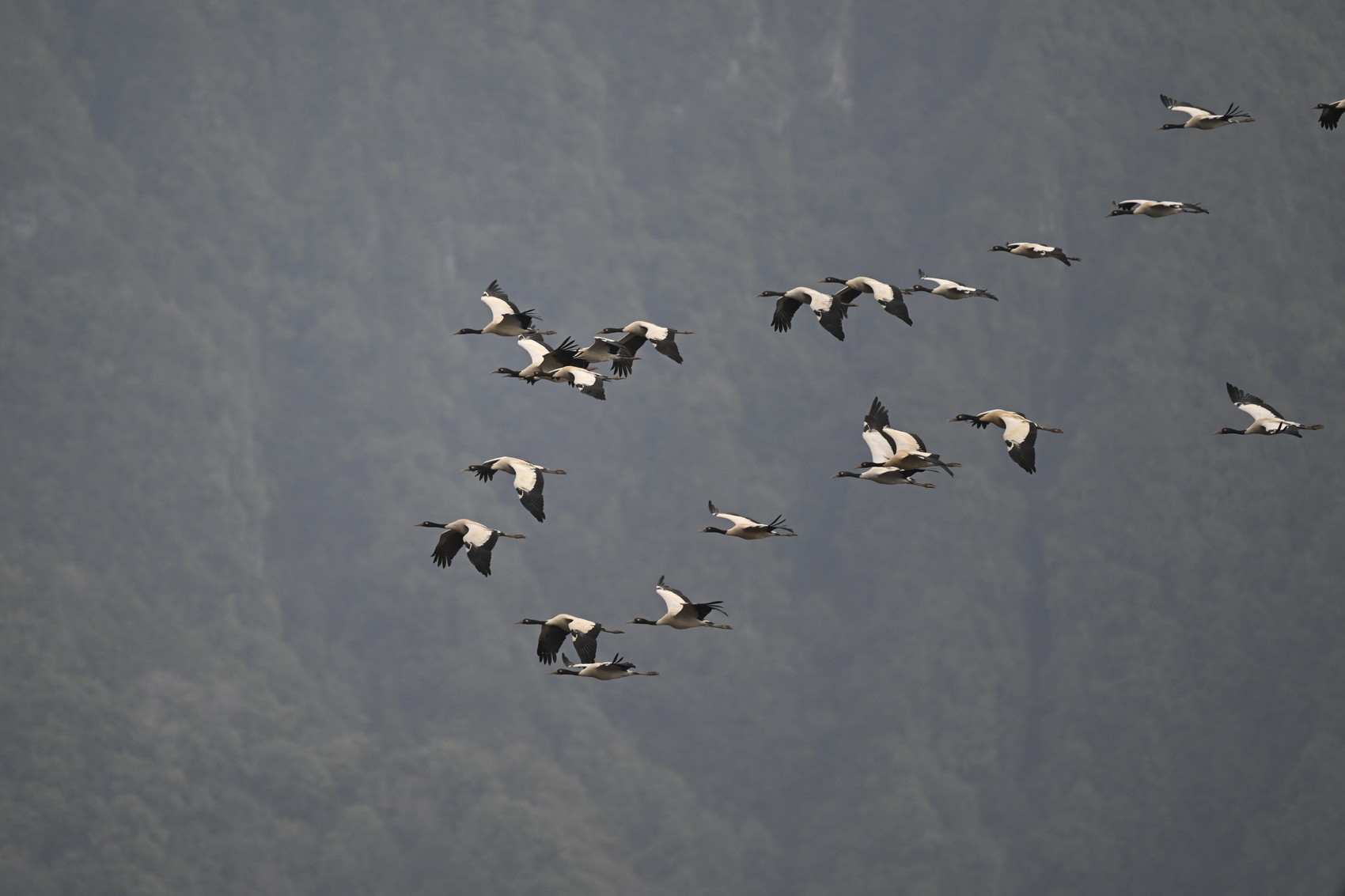 近日,四川金阳百草坡省级自然保护区2025—2026年度黑颈鹤专项监测工作结束,监测数据显示,2025年11月16日至30日,保护区累计监测到迁徙过境黑颈鹤34批次422只;2026年3月8日至26日,监测到迁徙过境黑颈鹤47批次总计1265只,两次监测累计记录黑颈鹤1687只。