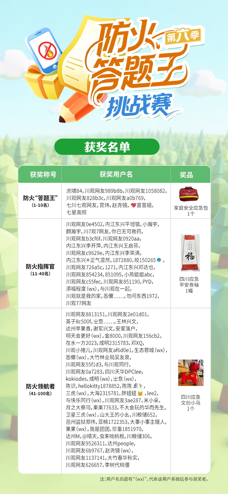 当前,我们仍处于四川省森林草原防灭火警示宣传月,虽然更多坚持参赛的选手未获得排名奖,但相信这份持续参赛的坚持,能让每一个人,都能更好地守护我们的绿水青山。