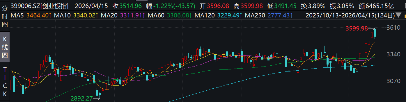 4月15日,A股三大指数走势分化,沪指冲高回落、勉强收红。
