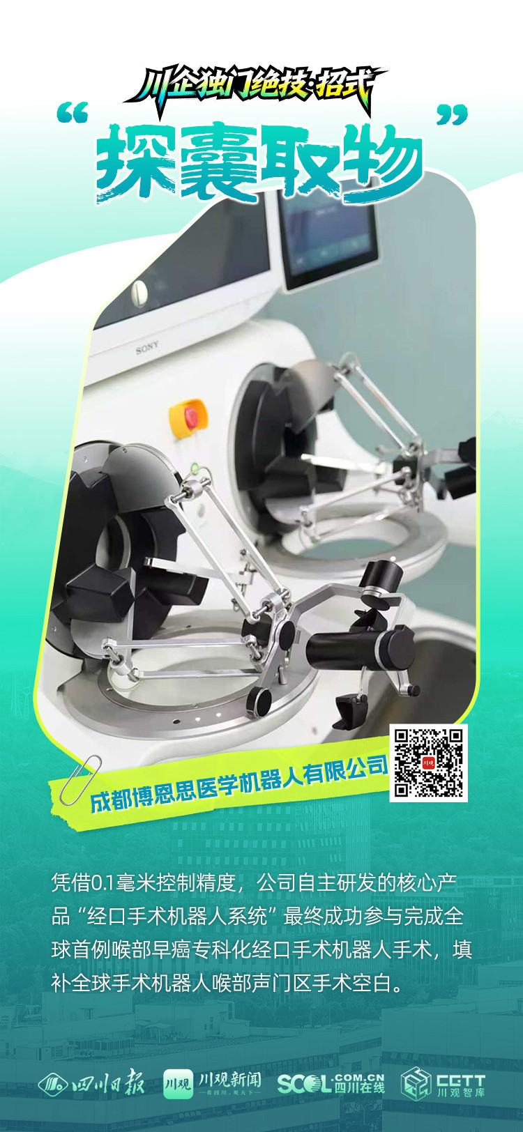 勇闯行业无人区,填补全球手术机器人喉部声门区手术空白,这独门绝技太牛了,为“四川造”喝彩叫好!
