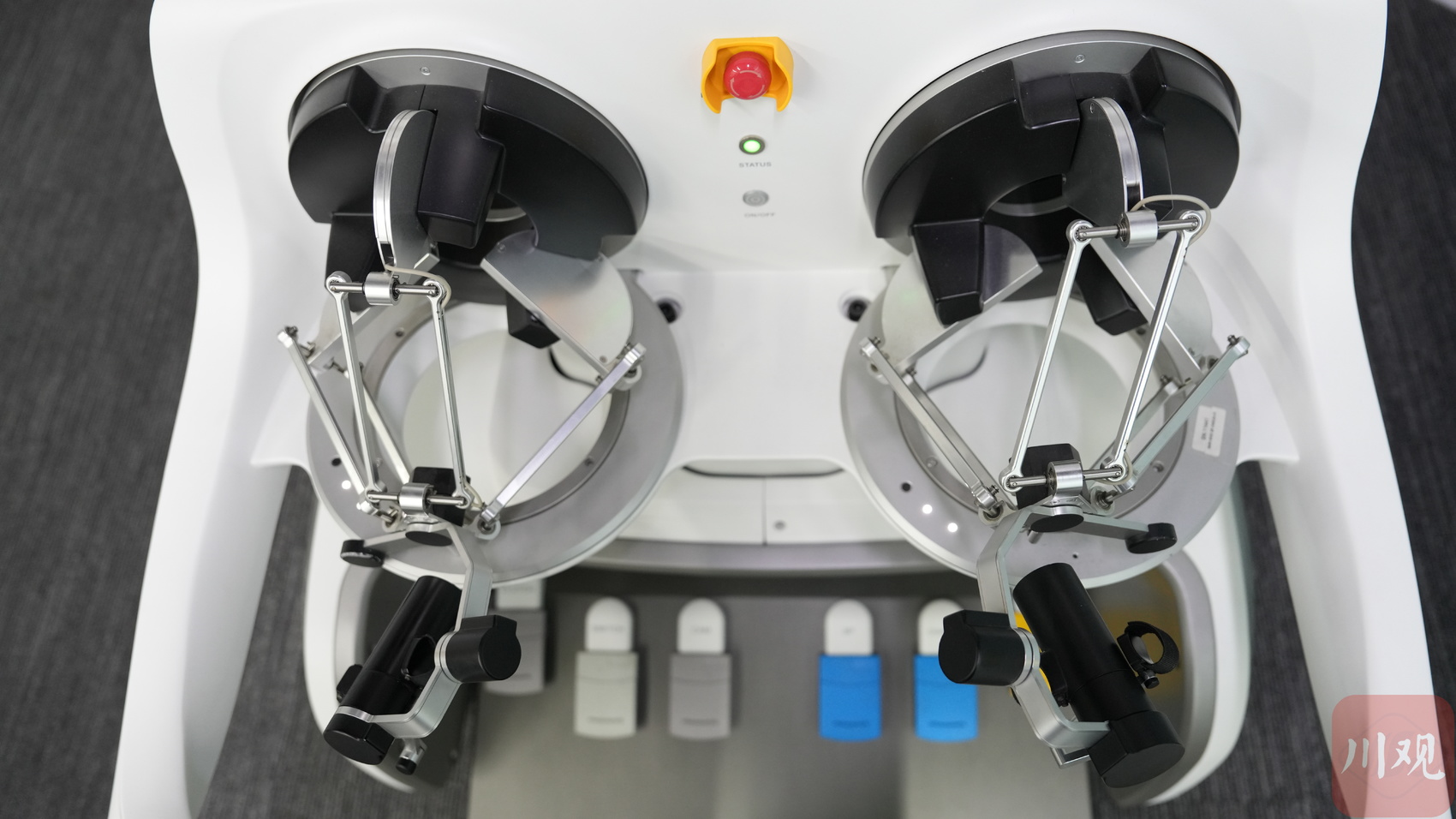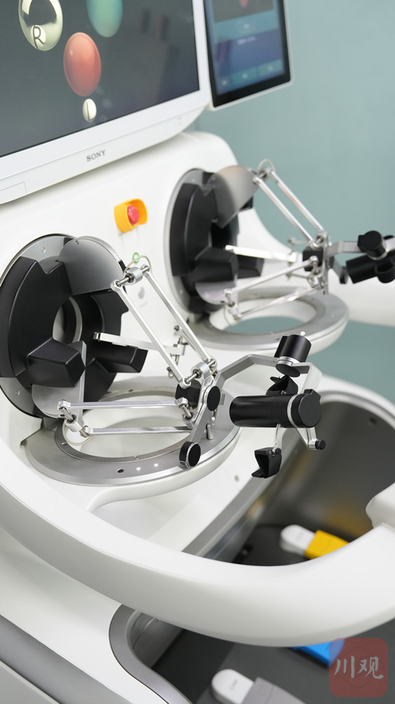将食指和大拇指套入操控套索,眼睛紧盯屏幕,通过捏、放、转动等动作,操控机械手完成规定动作。当将操作台屏幕上的光标操作放入不同区域时,还能感受到不同程度的力反馈……4月7日,成都博恩思医学机器人有限公司(以下简称博恩思)创始人李耀坐在手术机器人系统的医生操作台旁,一边操作示范一边介绍,“这是模拟医生在手术中接触不同器官组织时感受的力反馈效果,能进一步提高手术的安全性和精确度。”