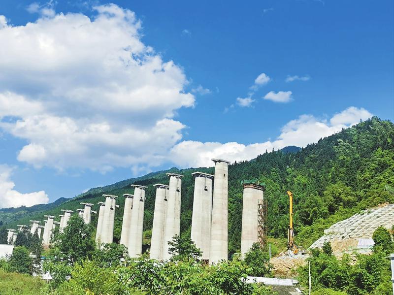 成都经泸州、黄桶、百色、南宁至北部湾的铁路正在规划建设,隆黄铁路就是这条路线的“瓶颈”路段之一。图为建设中的隆黄铁路叙永至毕节段冯家寨大桥。 四川铁投集团供图