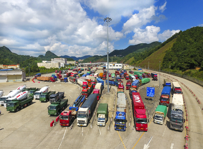 凭祥保税港区内,大货车有序等候通关。广西壮族自治区发展和改革委员会供图